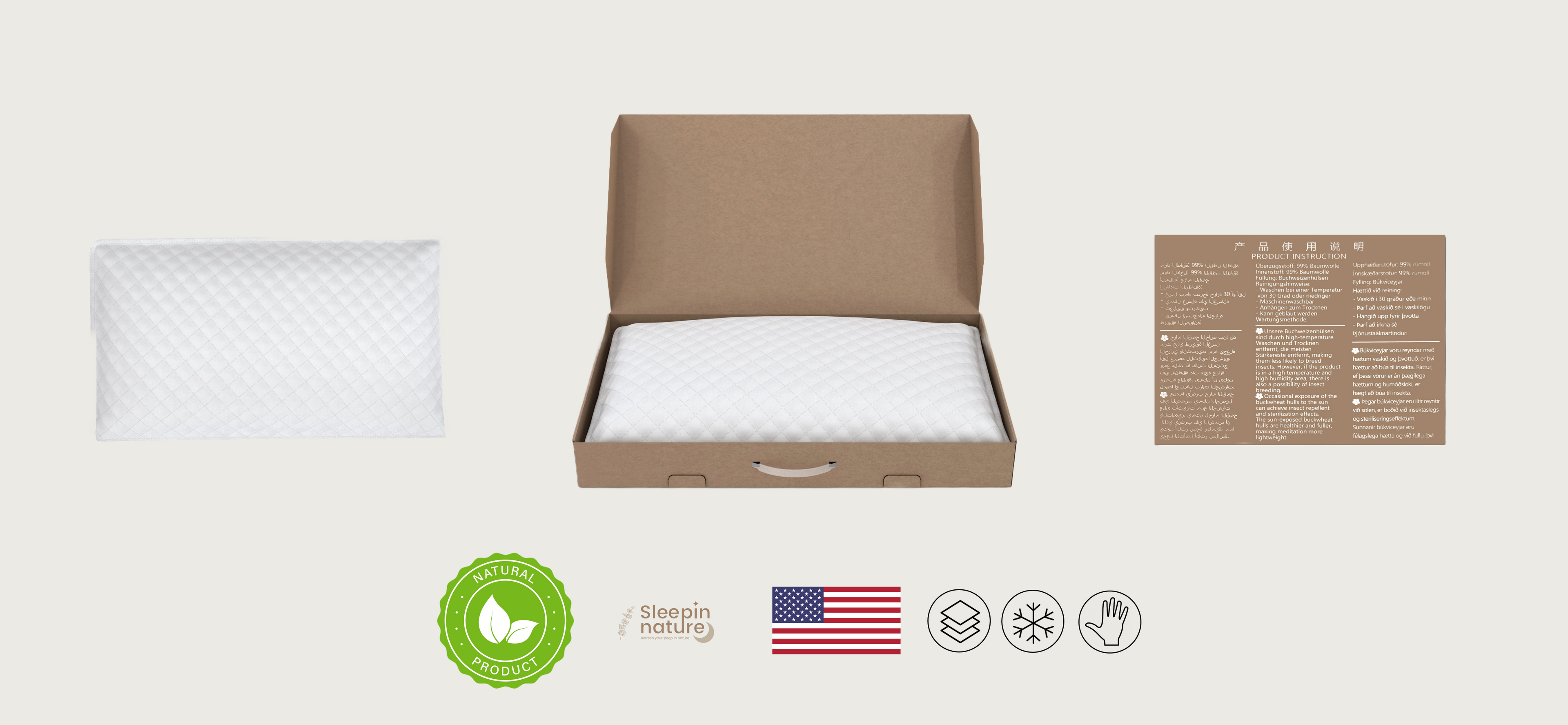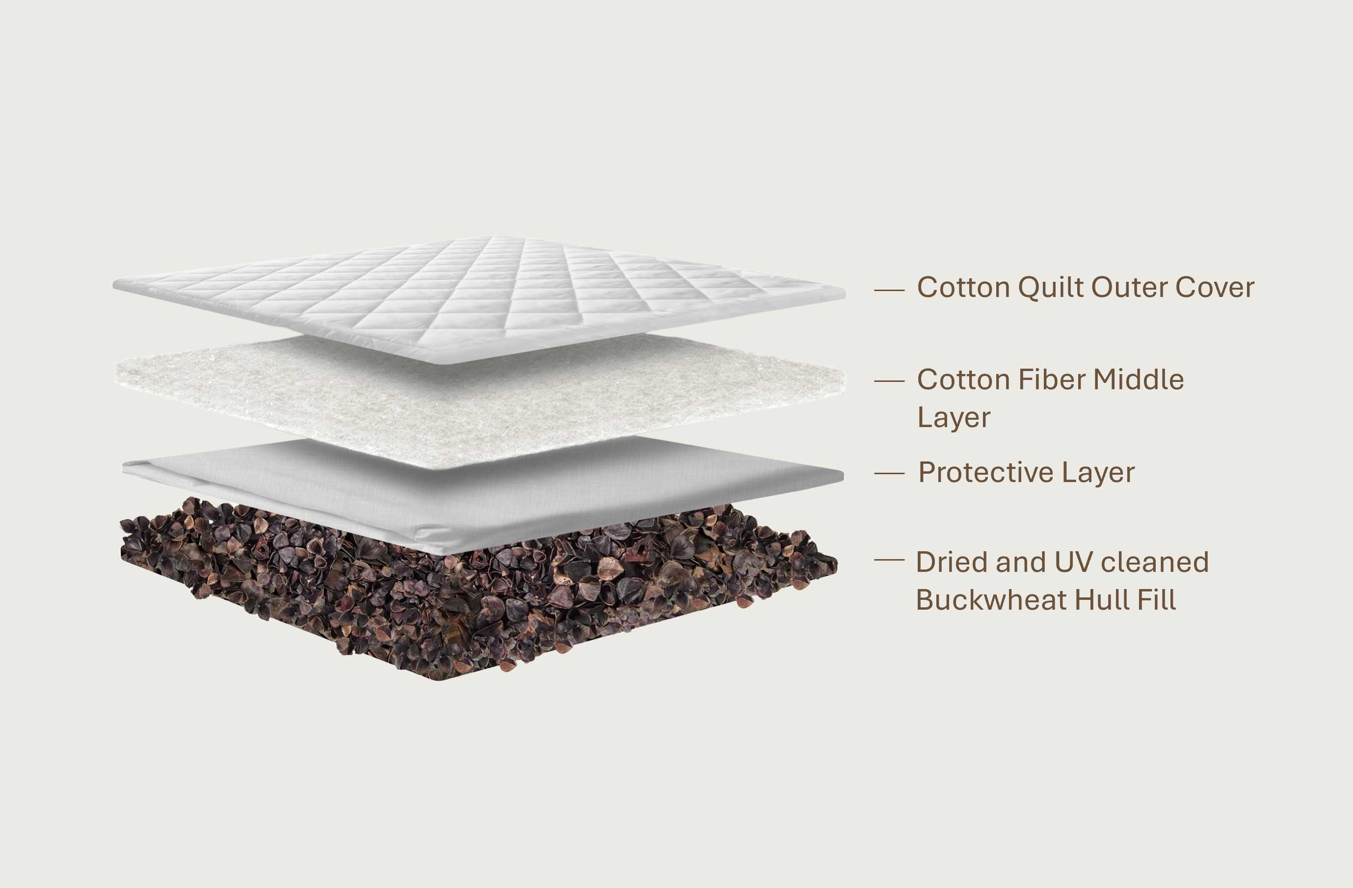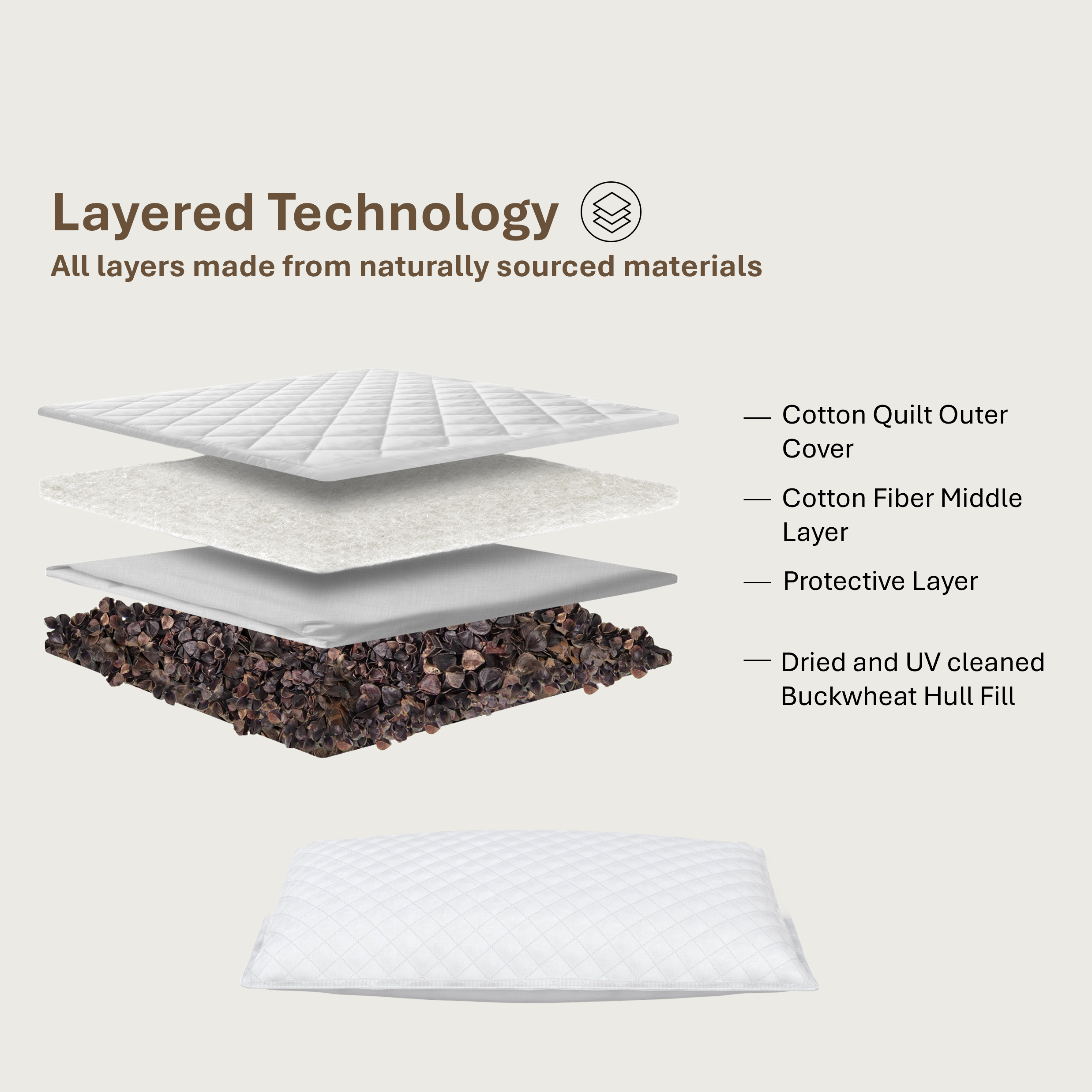 Buckwheat Pillow by Sleepinnatuer consists of 4 layers of materials, all made from naturally sourced ingredients.