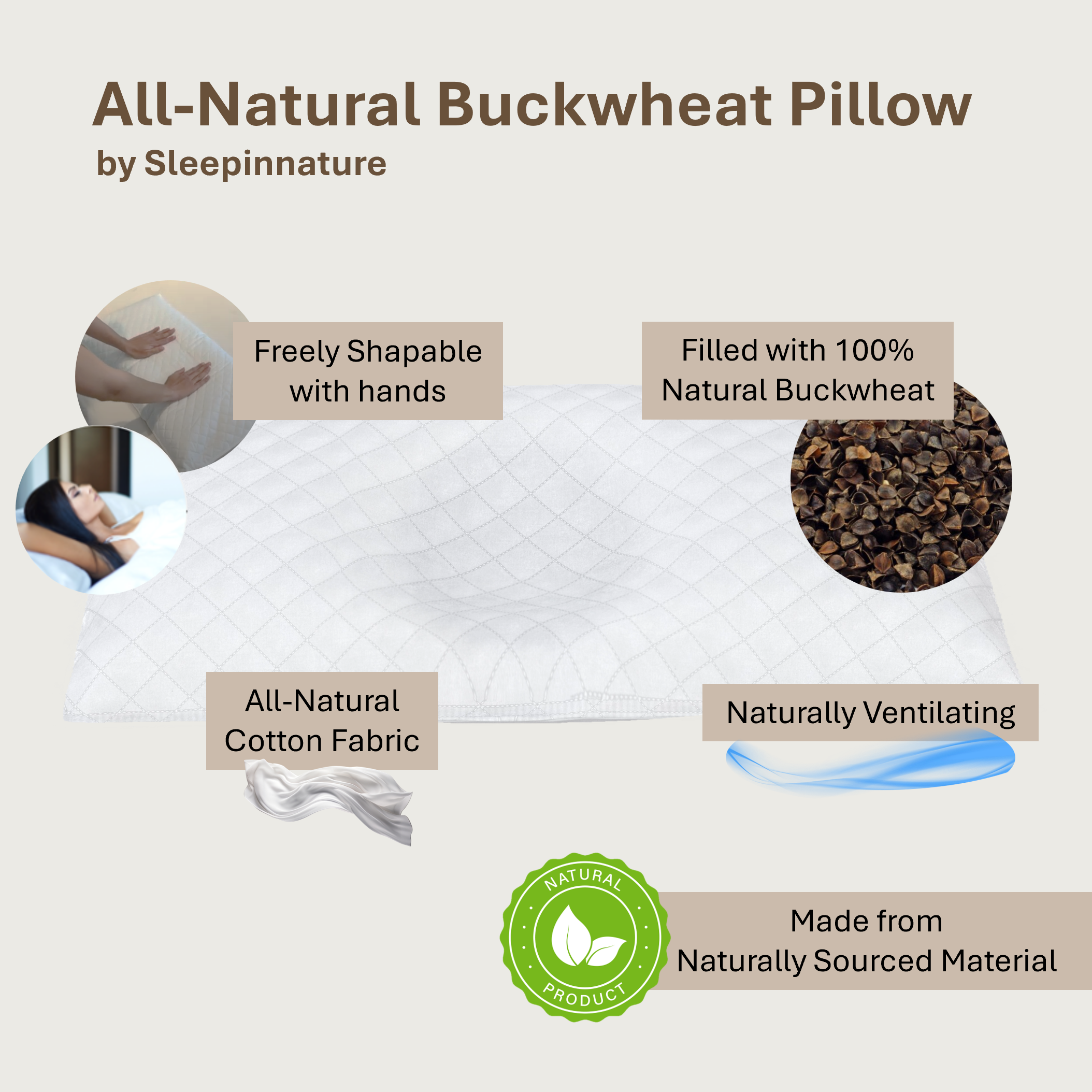 All-Natural Buckwheat Pillow by Sleepinnature